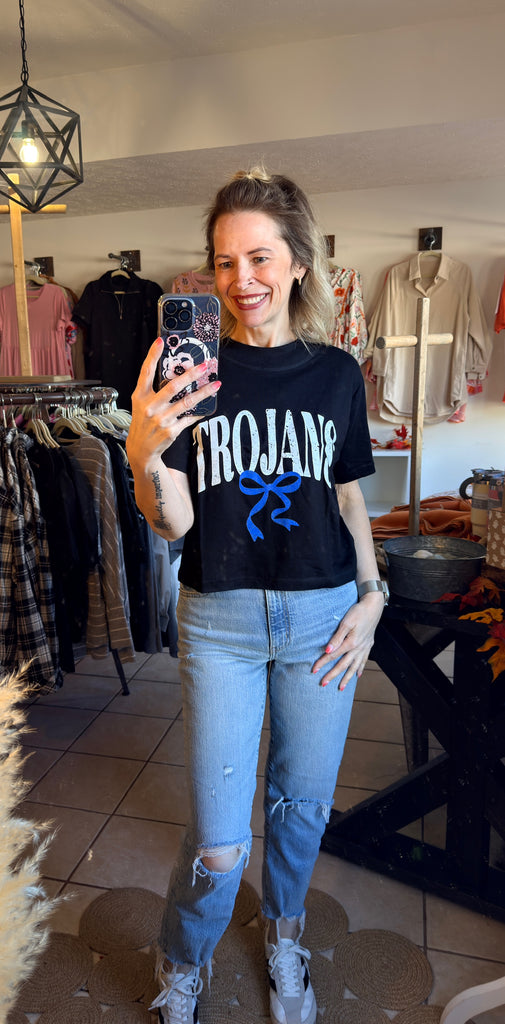 Trojans Cropped/Shorter Length Short Sleeve Crewneck Tee - Coquette