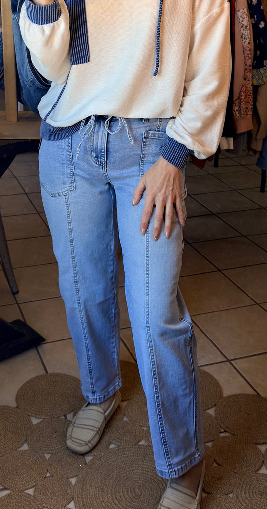 Light Wash Drawstring Waist Barrel Jeans