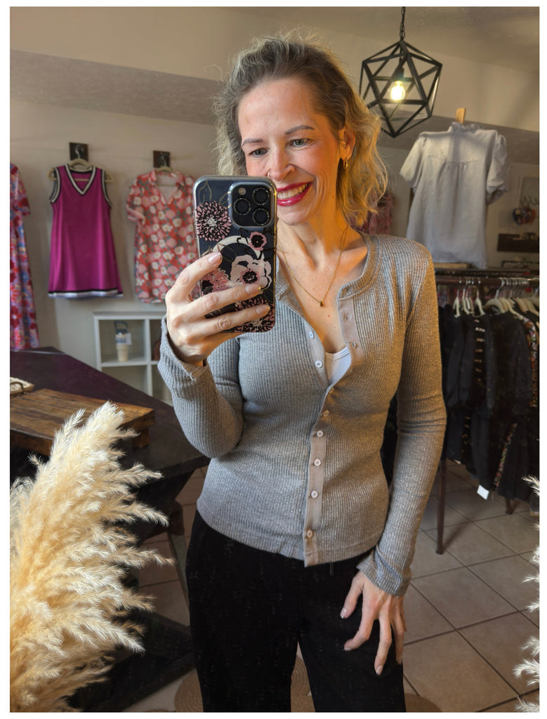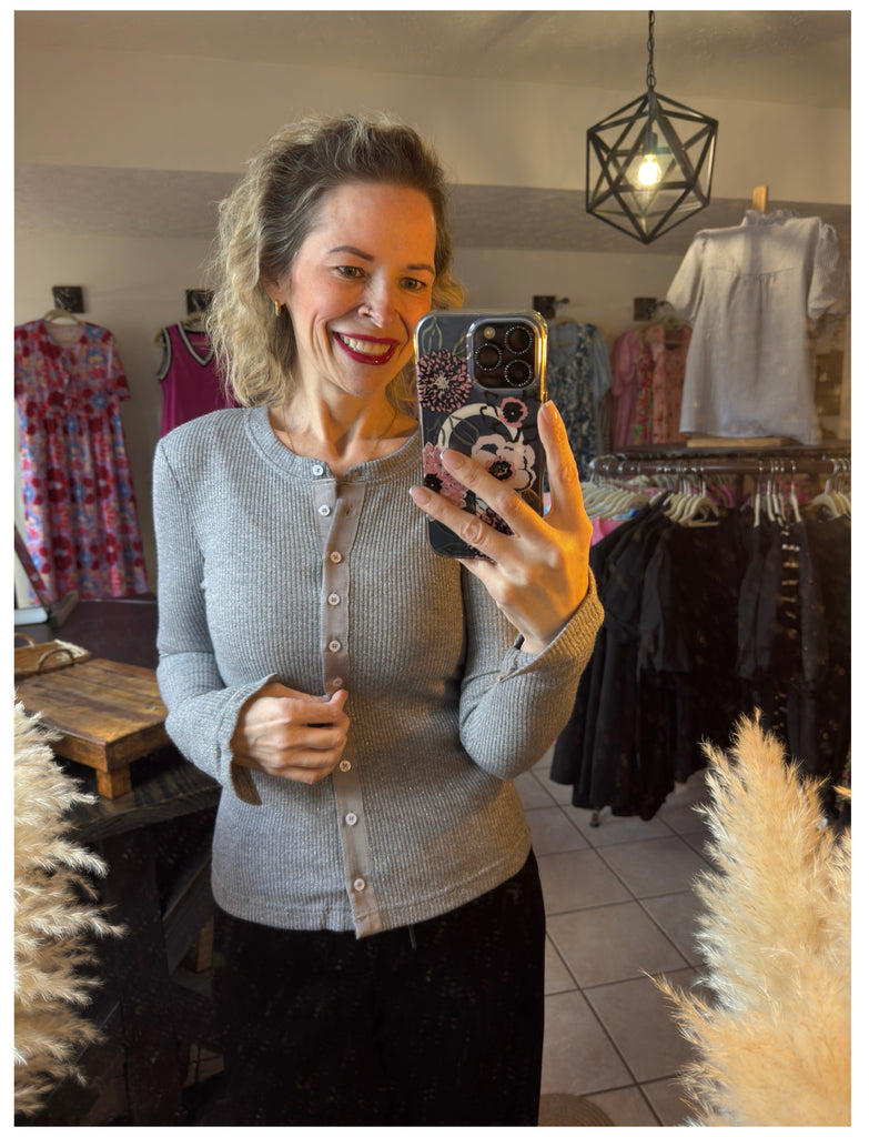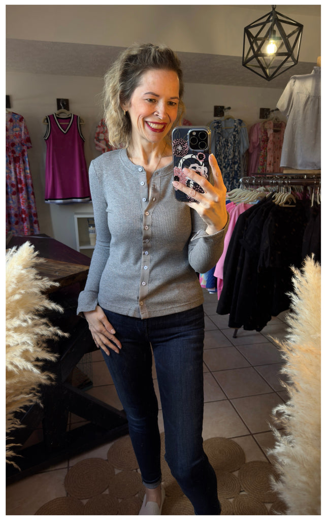 Dark Gray Ribbed Knit Button Down Slim Fit Cardigan