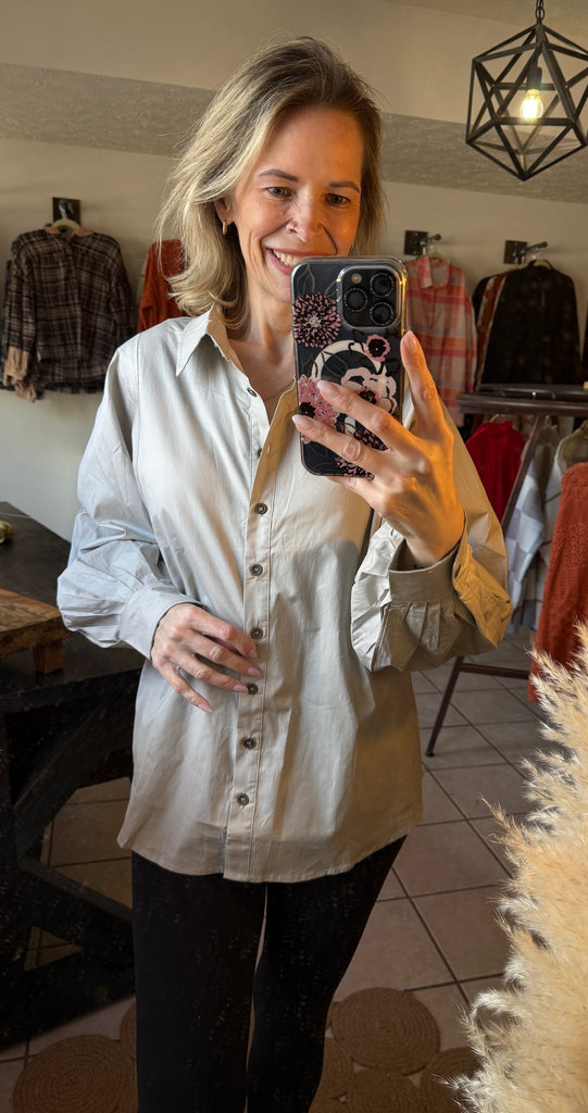 Gray Balloon Sleeve Button Up Top