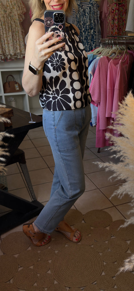 Light Wash High Rise Relaxed Barrel Jeans with Patch Pockets