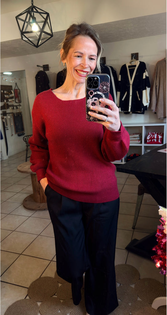 Red Dahlia Ribbon Bow Knot Tie Back Sweater