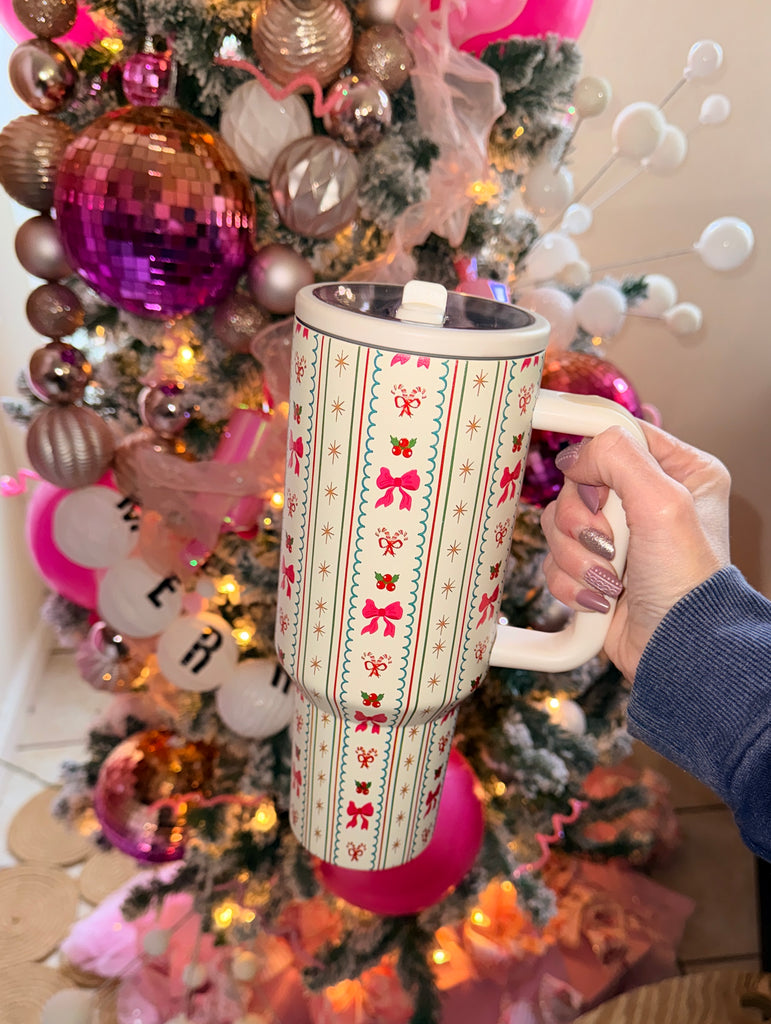Holly Jolly Bow Striped Flip Straw 40oz Holiday Tumbler - Christmas