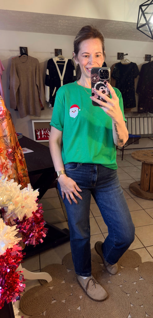 Green Tee with Embroidered Santa Pocket Design