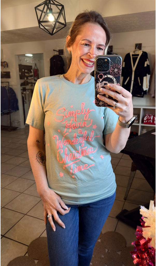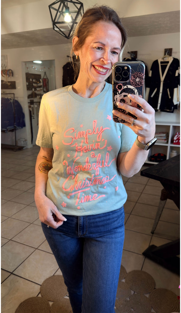 'Simply Havin' a Wonderful Christmas Time' Graphic Tee - Aqua Blue Tee - Pink Christmas - Bella Canvas
