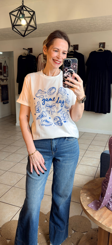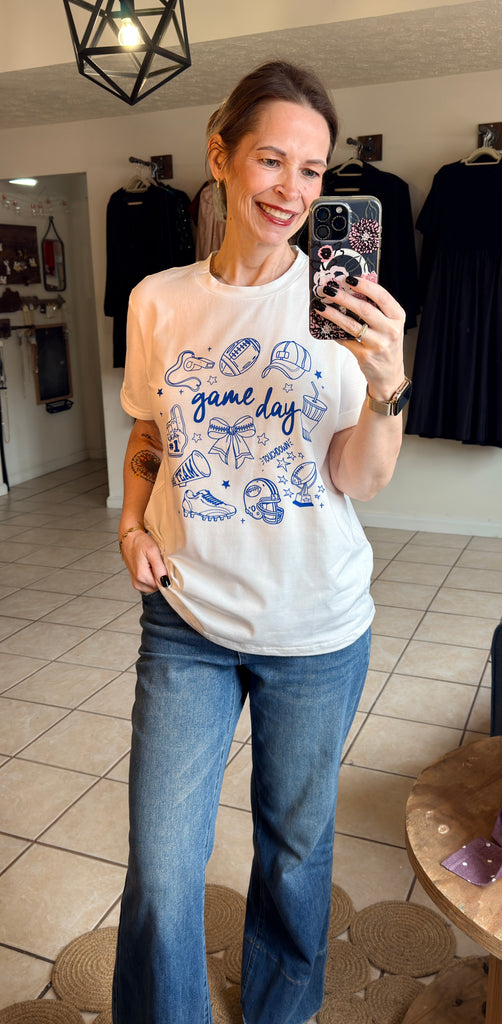 White Tee with Royal Blue Game Day Graphics - Football